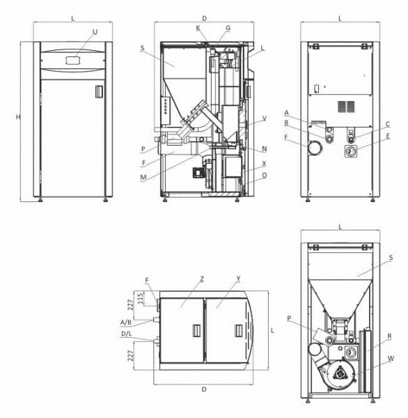 | Врата (капак) за зареждане с пелети | Z | + |