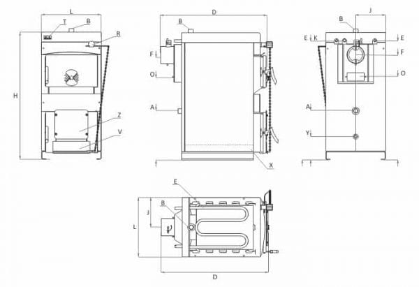 - Оребрената повърхност на горивната камера и триходовият път на димните газове подобряват топлообмена.